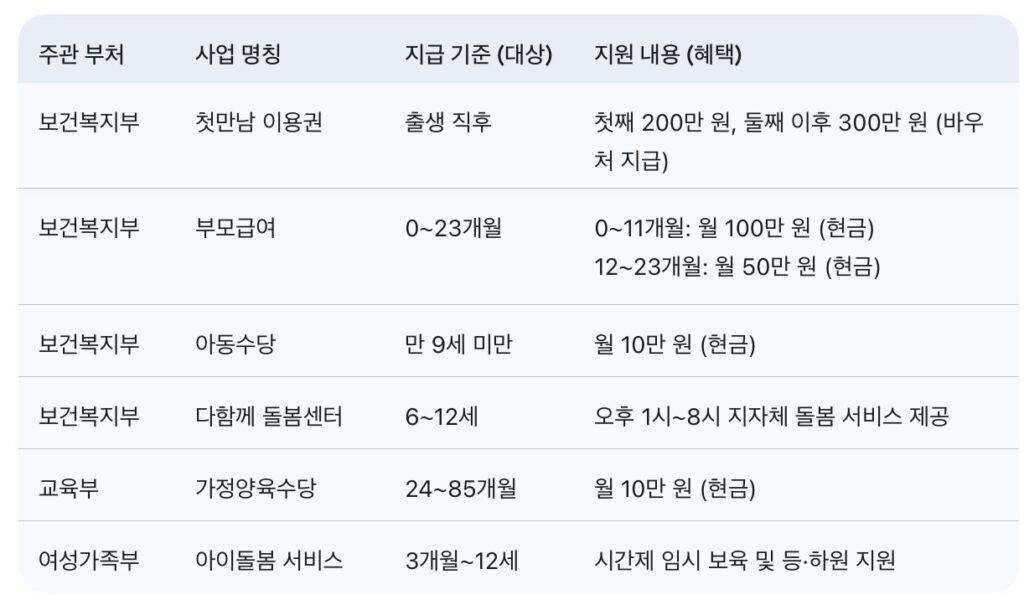 현금 지원뿐만 아니라, **돌봄 서비스(다함께돌봄센터, 아이돌봄서비스 등)**도 통합을 검토 중입니다. 돈은 받는데 아이 맡길 곳이 없어 고생하는 ‘미스매치’가 줄어들 것으로 기대됩니다.